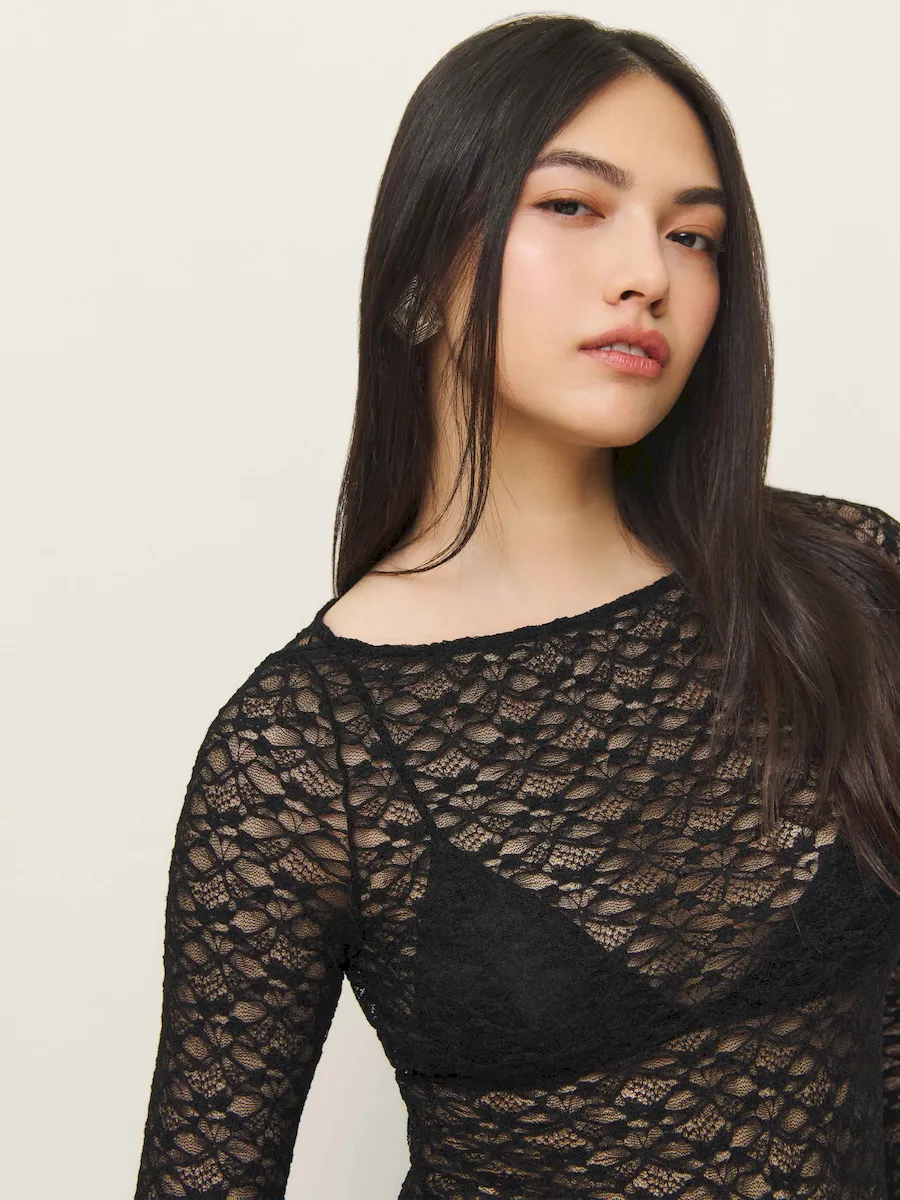The model is wearing a size XS and is 5’10”, 23″ waist, 34″ hips, 24″ bust.