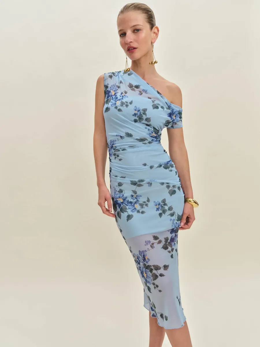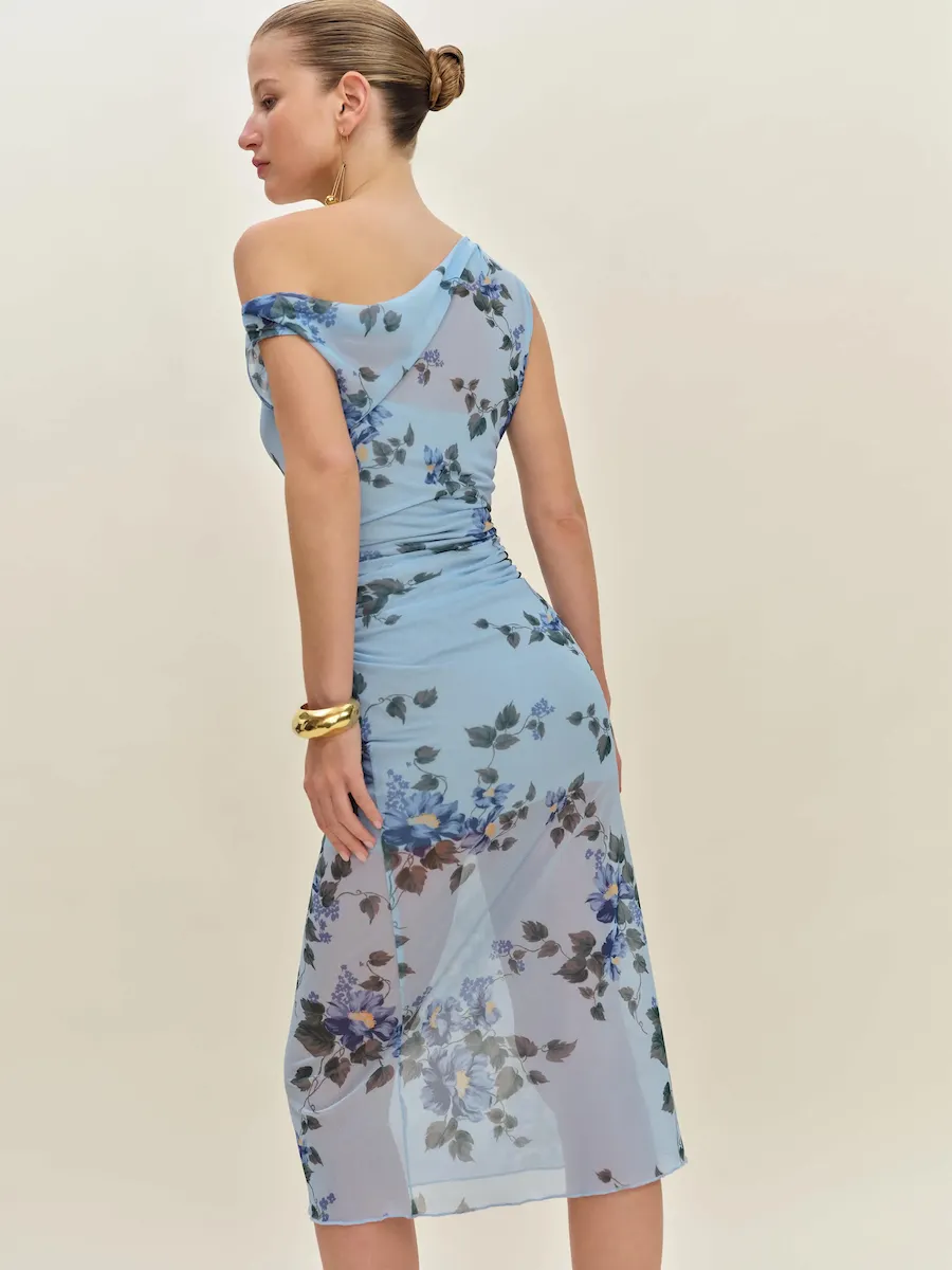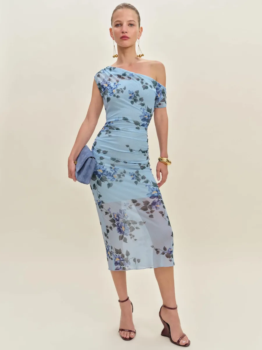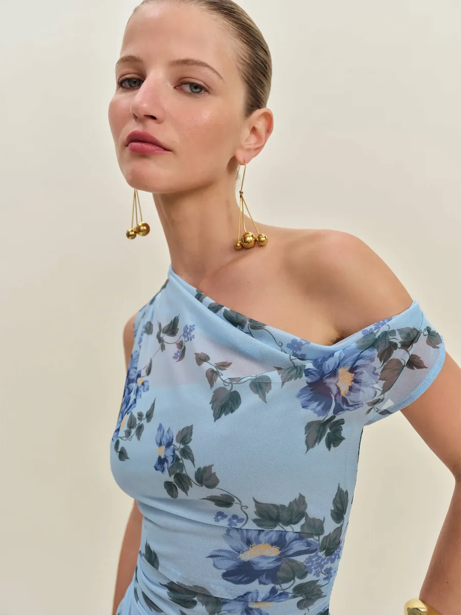 asymmetric neckline.