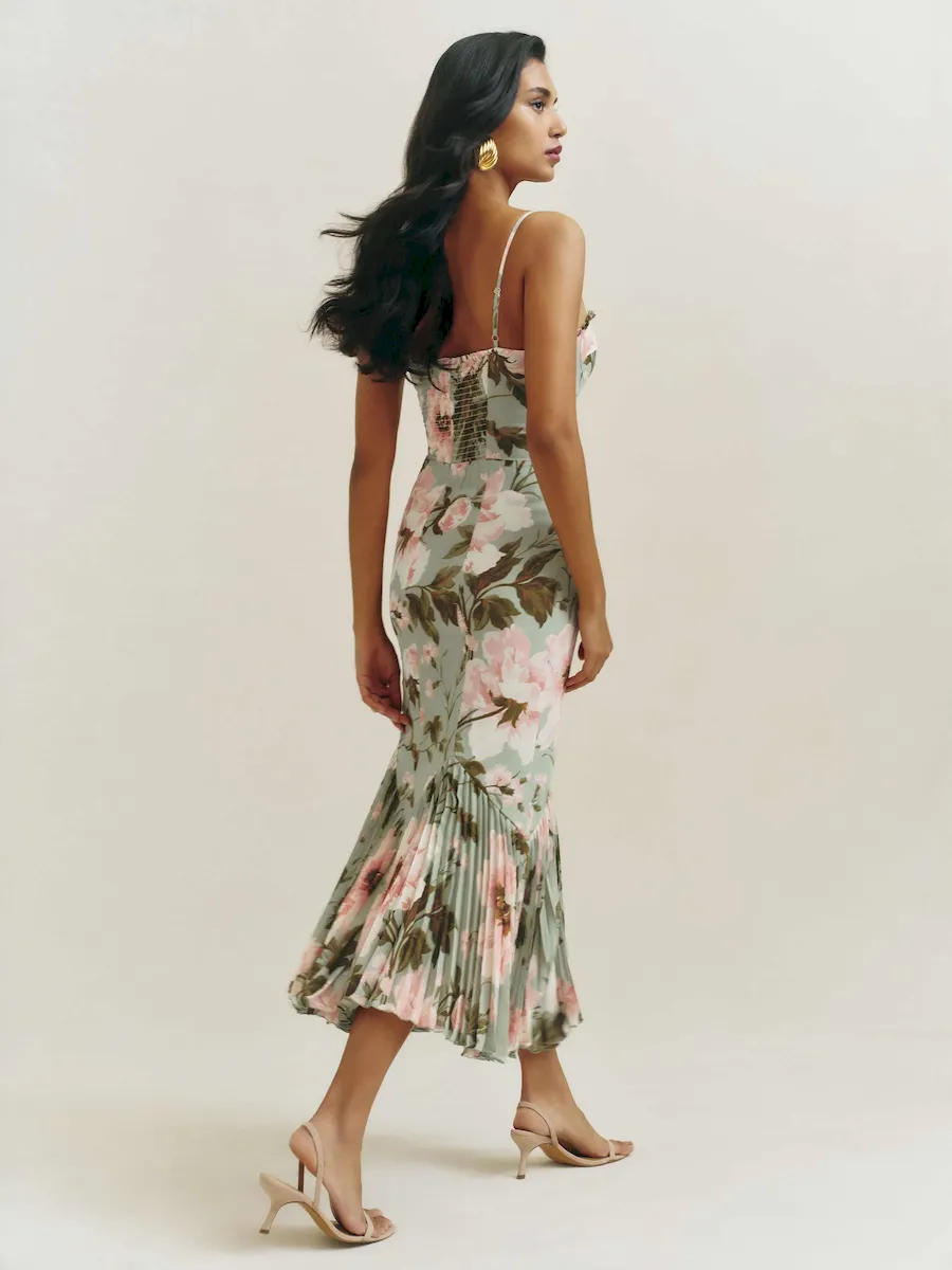 back smocking, adjustable straps, sweetheart neckline.