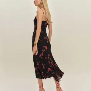 The model is wearing a size 0 and is 5’10”, 24″ waist, 35″ hips, 31″ bust.