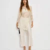 The model is wearing a size 14 and is 5’8″, 33″ waist, 50″ hips, 42″ bust.