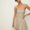 The model is wearing a size 0 and is 5’10”, 25″ waist, 34.5″ hips, 31″ bust.