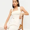 The model is wearing a size 0 and is 5’9″, 23.5″ waist, 34″ hips, 34″ bust.