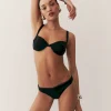 The model is wearing a size XS and has a 23″ waist, 34″ hips.