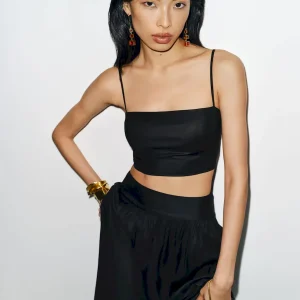 The model is wearing a size 0 and is 5’10”, 24.5″ waist, 34.5″ hips, 31″ bust.