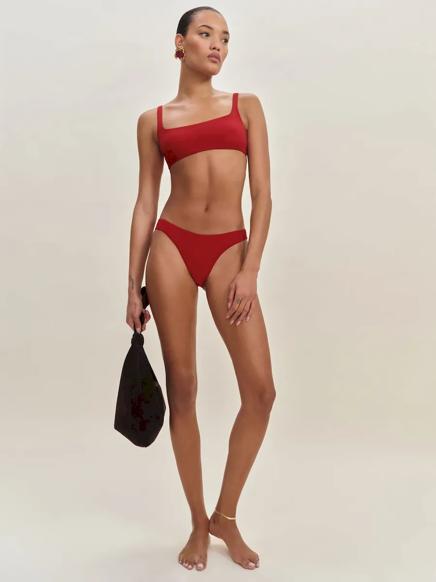 EVO by Fulgar®️ is a polyamide fiber that’s made with renewable, naturally growing plants instead of petroleum. Same stretch and durability as a regular nylon bathing suit minus all the fossil fuels.