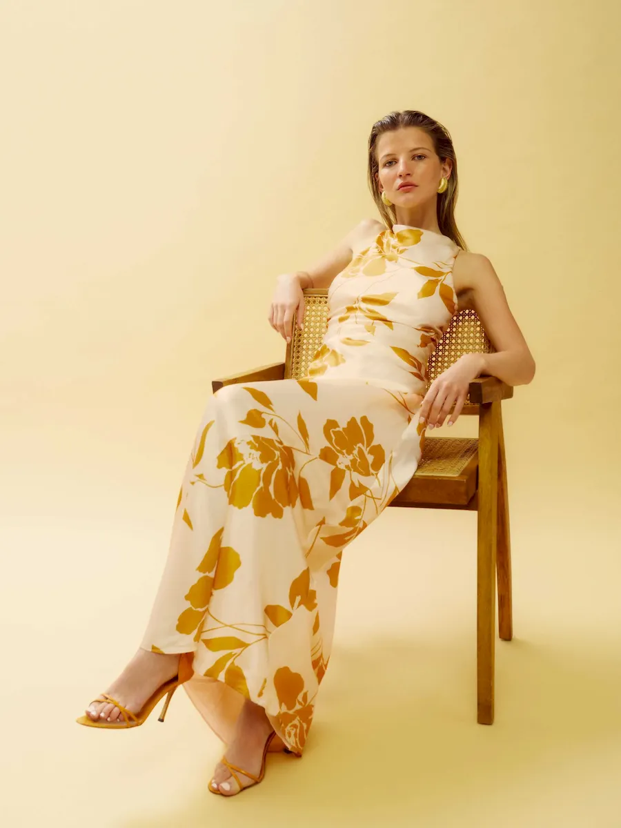 Intended to graze the floor when worn with heels. Hemming may be necessary to achieve desired length.