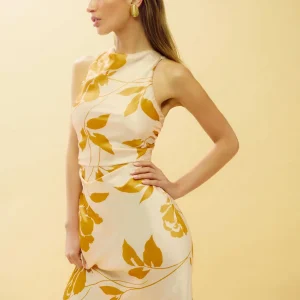 The model is wearing a size 0 and is 5’7″, 23″ waist, 34″ hips, 32″ bust.