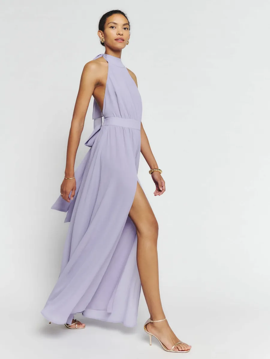 The model is wearing a size 0 and is 5’11”, 24″ waist, 34″ hips, 32″ bust.