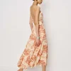 The model is wearing a size 0 and is 5’10”, 24″ waist, 35″ hips, 31″ bust.