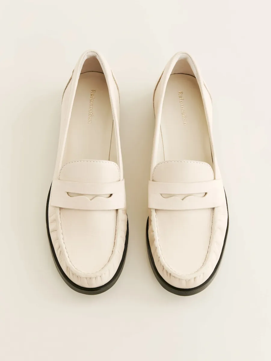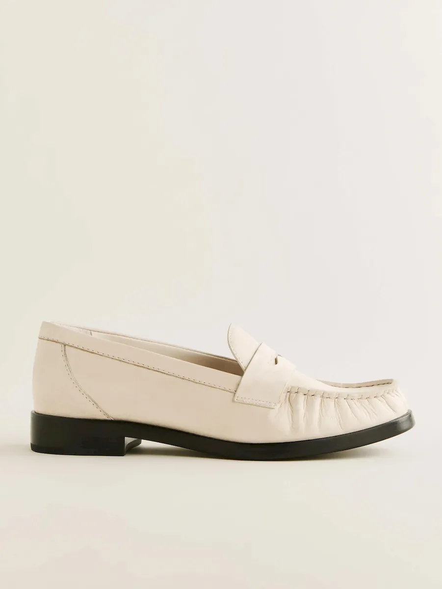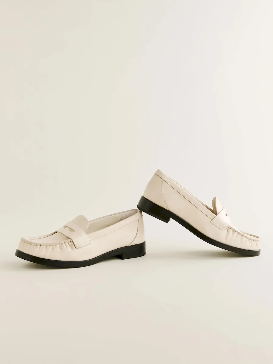 classic penny loafer detail on upperand moc stitch detail on upper.