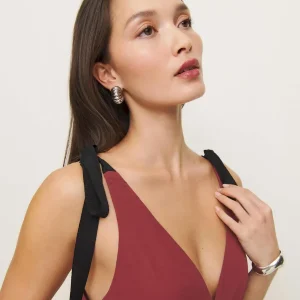 The model is wearing a size 0 and is 5’9″, 24″ waist, 34″ hips, 31″ bust.