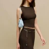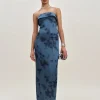 The model is wearing a size 0 and is 5’10”, 25″ waist, 34.5″ hips, 31″ bust.