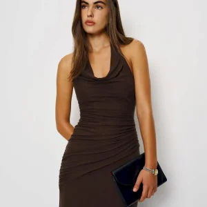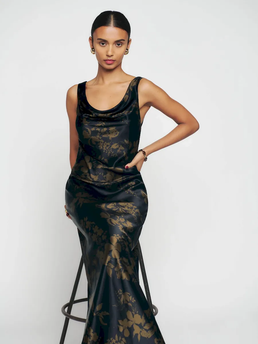 non-adjustable straps, cowl neckline.