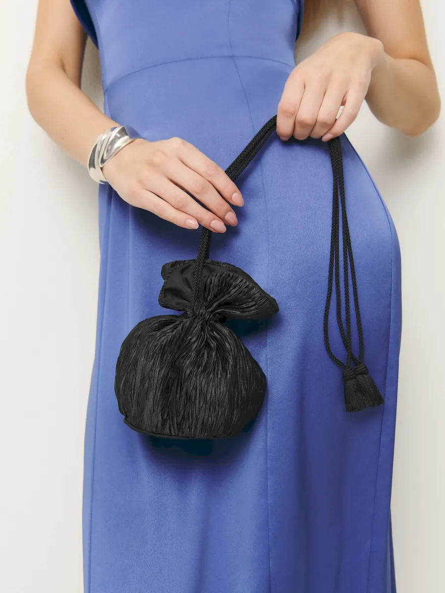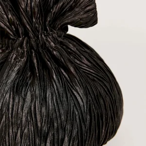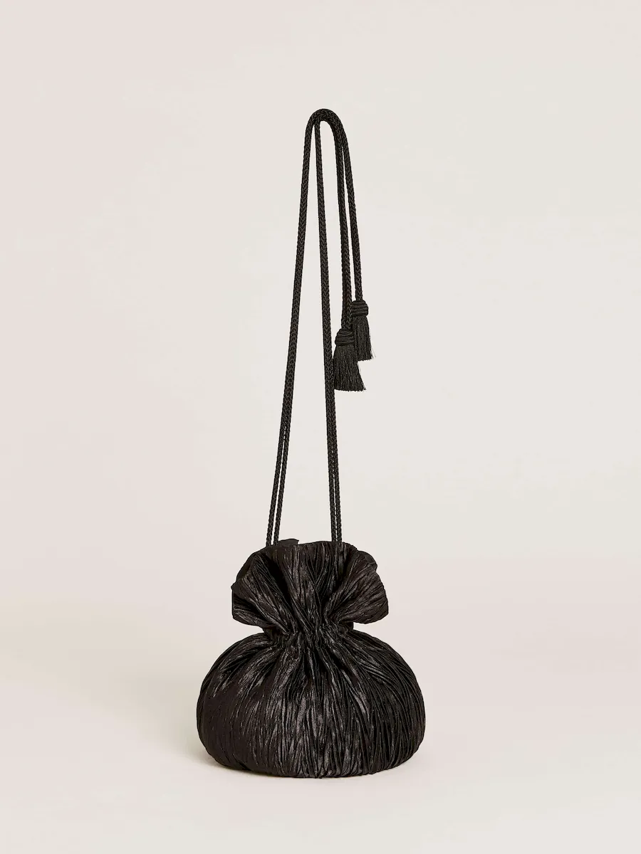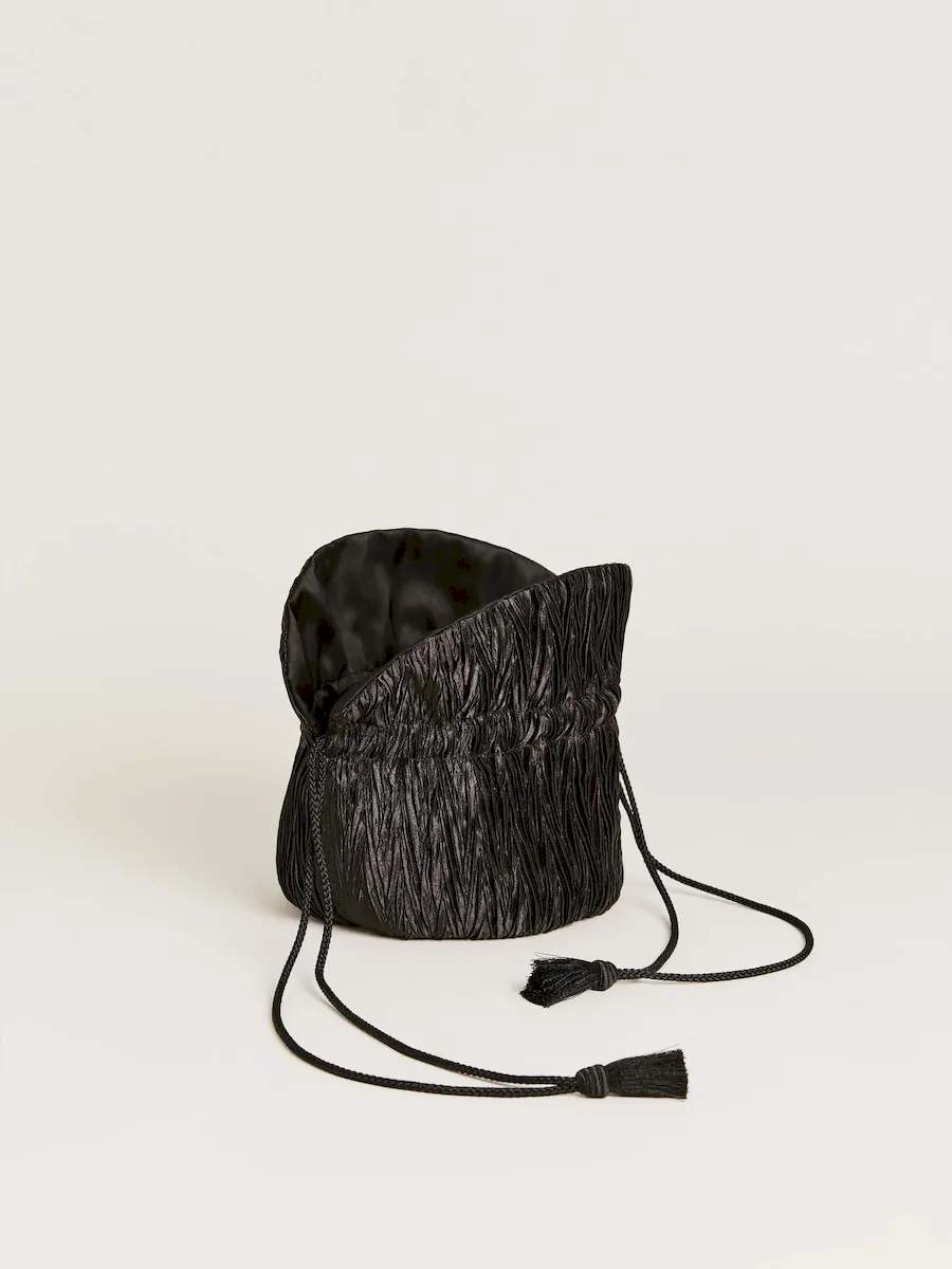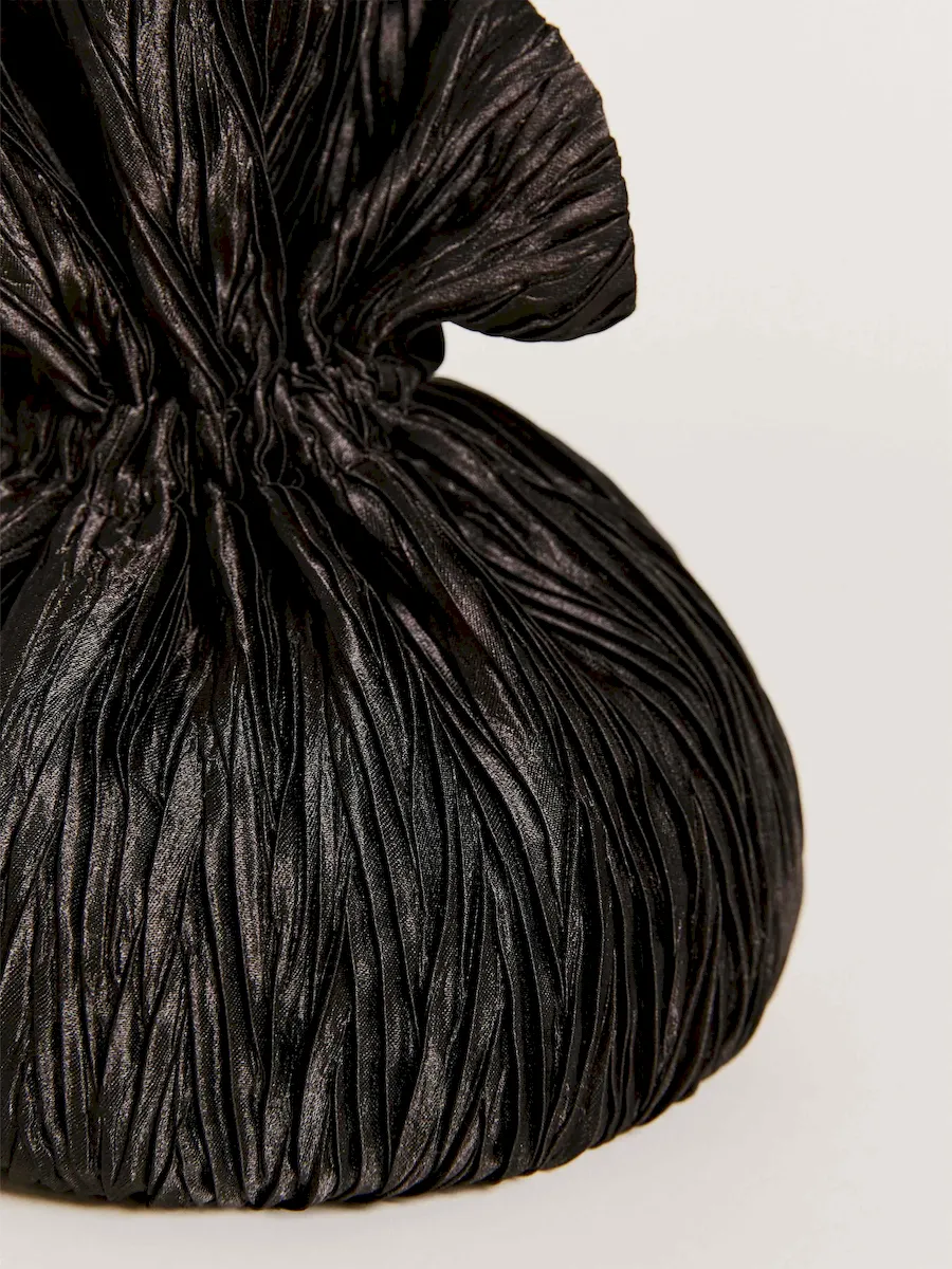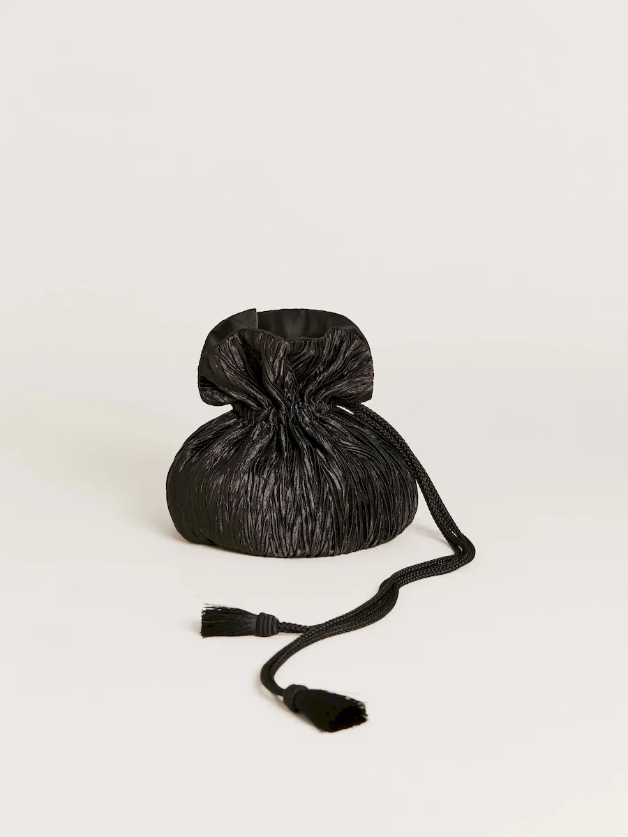 a pleated pouch with a drawstring handle..