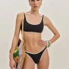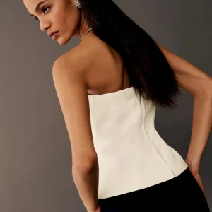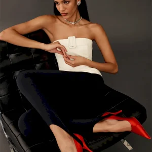 The model is wearing a size 0 and is 5’10”, 23″ waist, 35.5″ hips, 32.5″ bust.