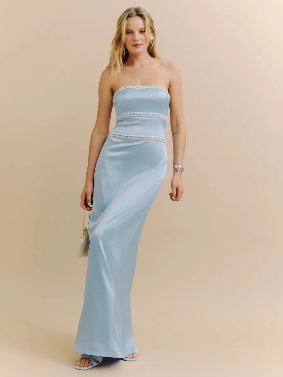 Designed to be fitted at bodice with a column skirt.See our size & fit guide.