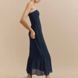 The model is wearing a size 0 and is 5’9″, 23″ waist, 34″ hips, 32″ bust.
