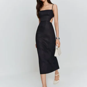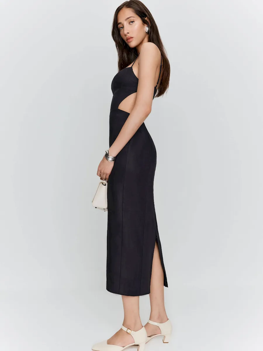 The model is wearing a size 2 and is 5’10”, 23″ waist, 34″ hips, 31″ bust.