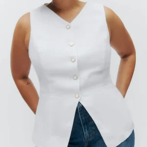 The model is wearing a size 14 and is 5’9.5″, 29″ waist, 43.5″ hips, 39.5″ bust.