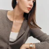 The model is wearing a size XS and is 5’9″, 24″ waist, 32.5″ hips, 31″ bust.