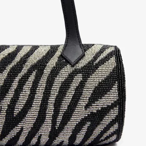 Double satin in 88% NAIA Renew Acetate and 12% polyester, with glass bead zebra overlay- because subtle was never really our thing. Handle with care to prevent snagging, do not fold.Store in the dust bag when not in use.
