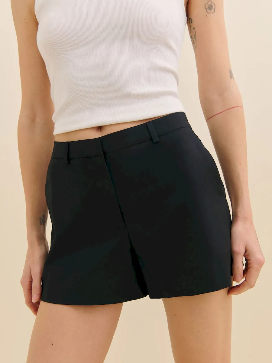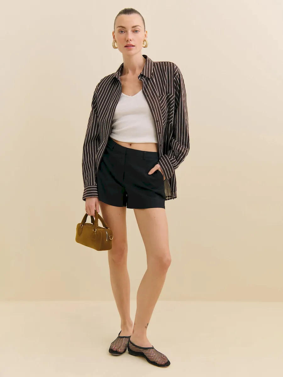 The model is wearing a size 0 and has a 25″ waist, 34.5″ hips.