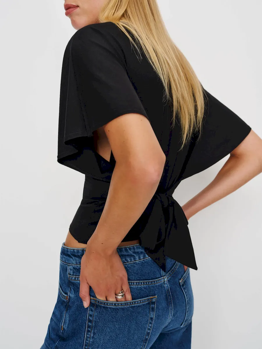The model is wearing a size XS and is 5’10”, 24″ waist, 35″ hips, 31″ bust.