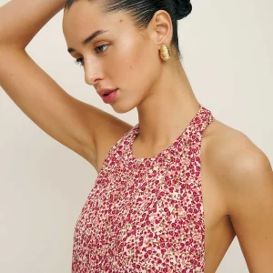 non-adjustable straps, halter neckline.