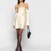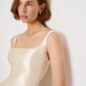 The model is wearing a size 0 and is 5’11”, 24″ waist, 35″ hips, 31″ bust.