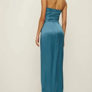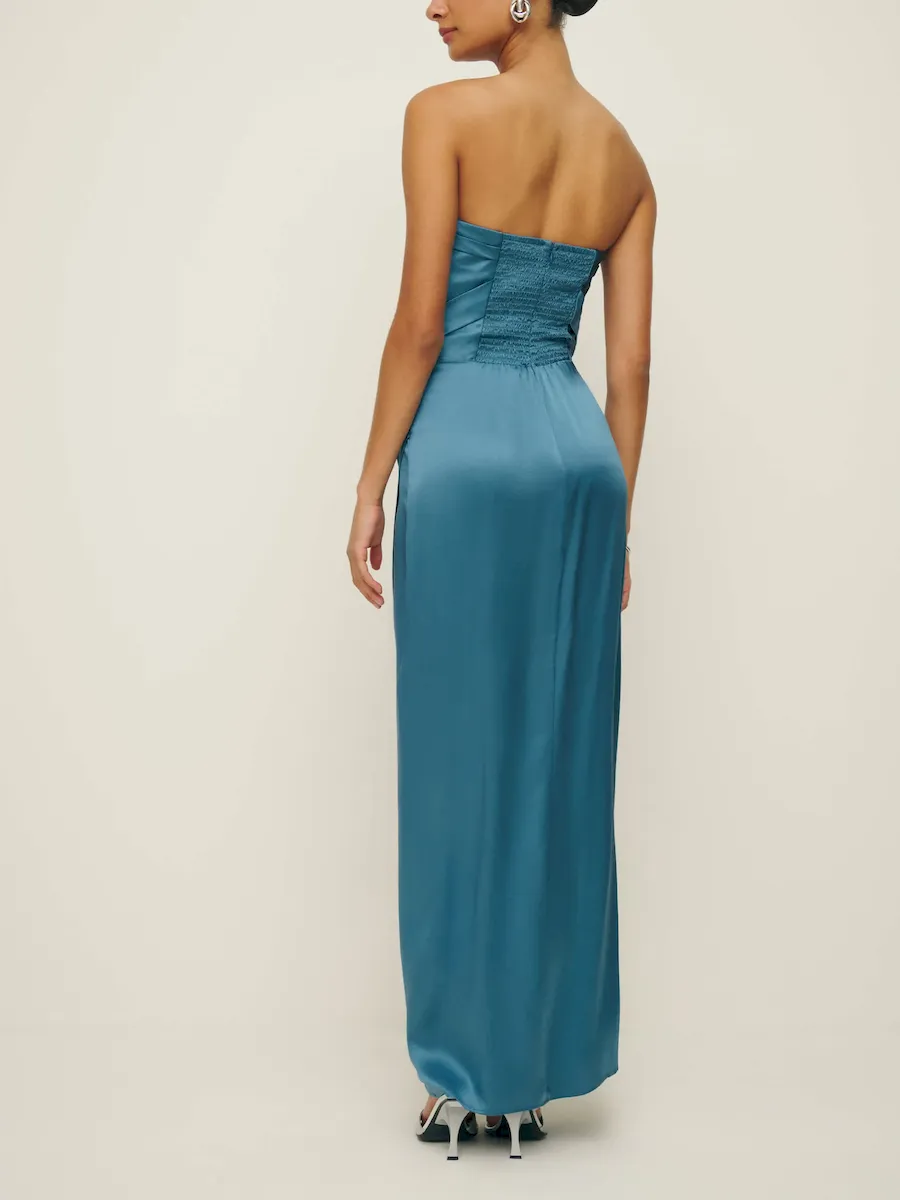 back zipperand high slit.