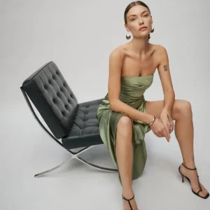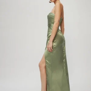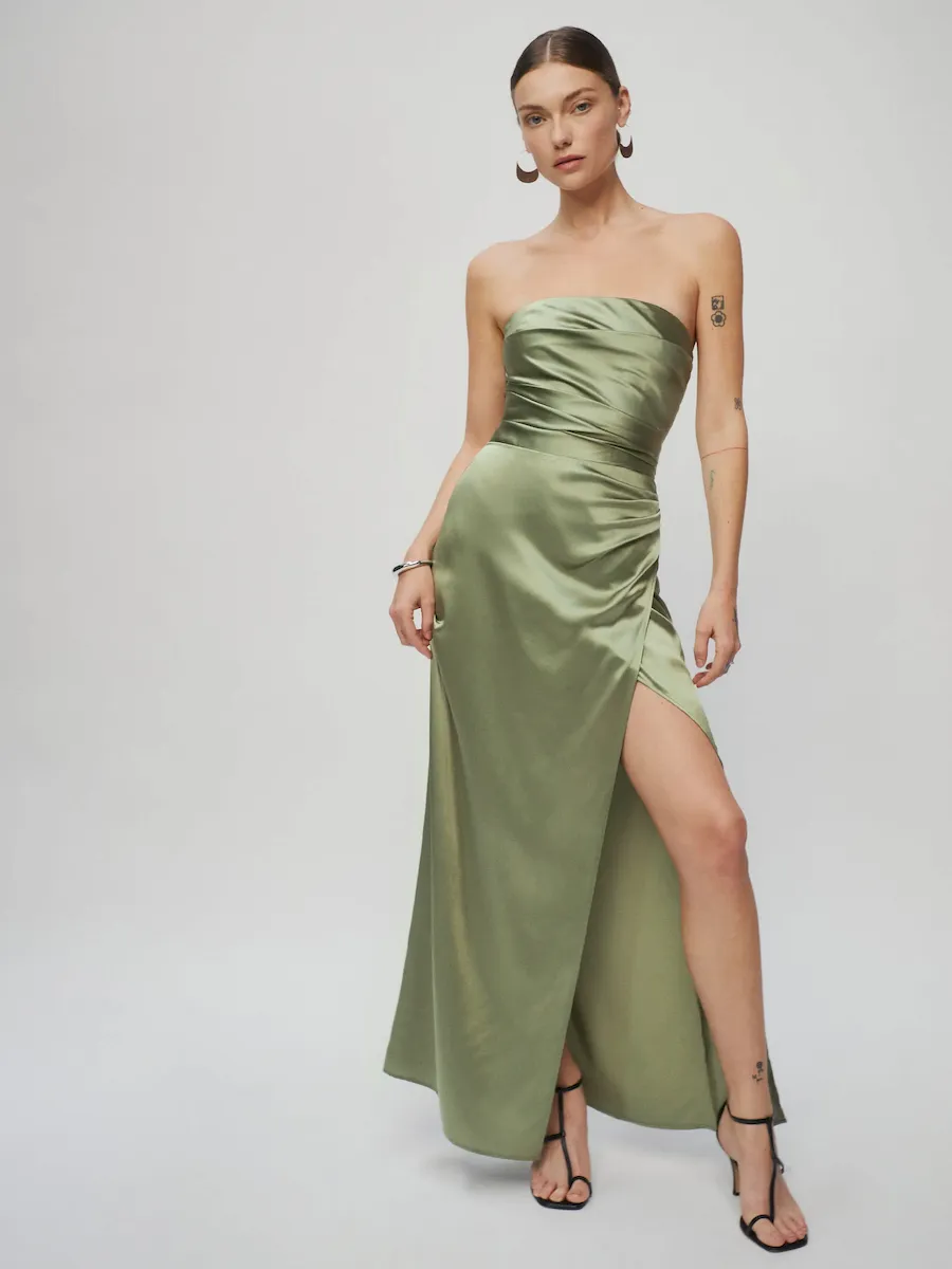 back zipperand high slit.
