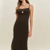 The model is wearing a size 0 and is 5’10”, 24″ waist, 35″ hips, 31″ bust.