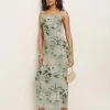 The model is wearing a size 0 and is 5’11”, 24″ waist, 34″ hips, 32″ bust.