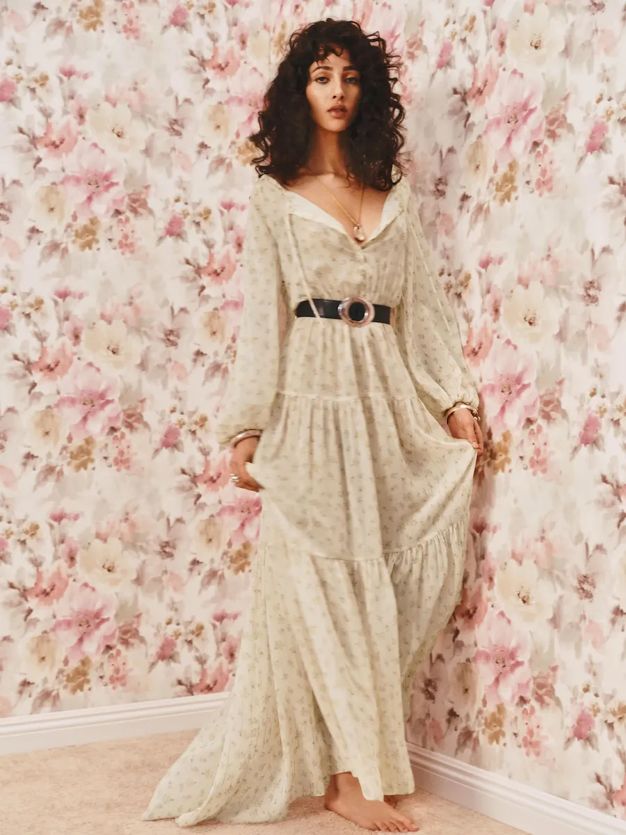 The model is wearing a size XS and is 5’10”, 24″ waist, 35″ hips, 31″ bust.