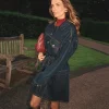 The model is wearing a size 2 and is 5’10”, 23″ waist, 34″ hips, 31″ bust.