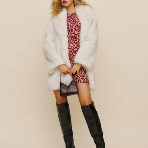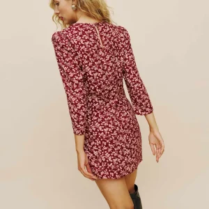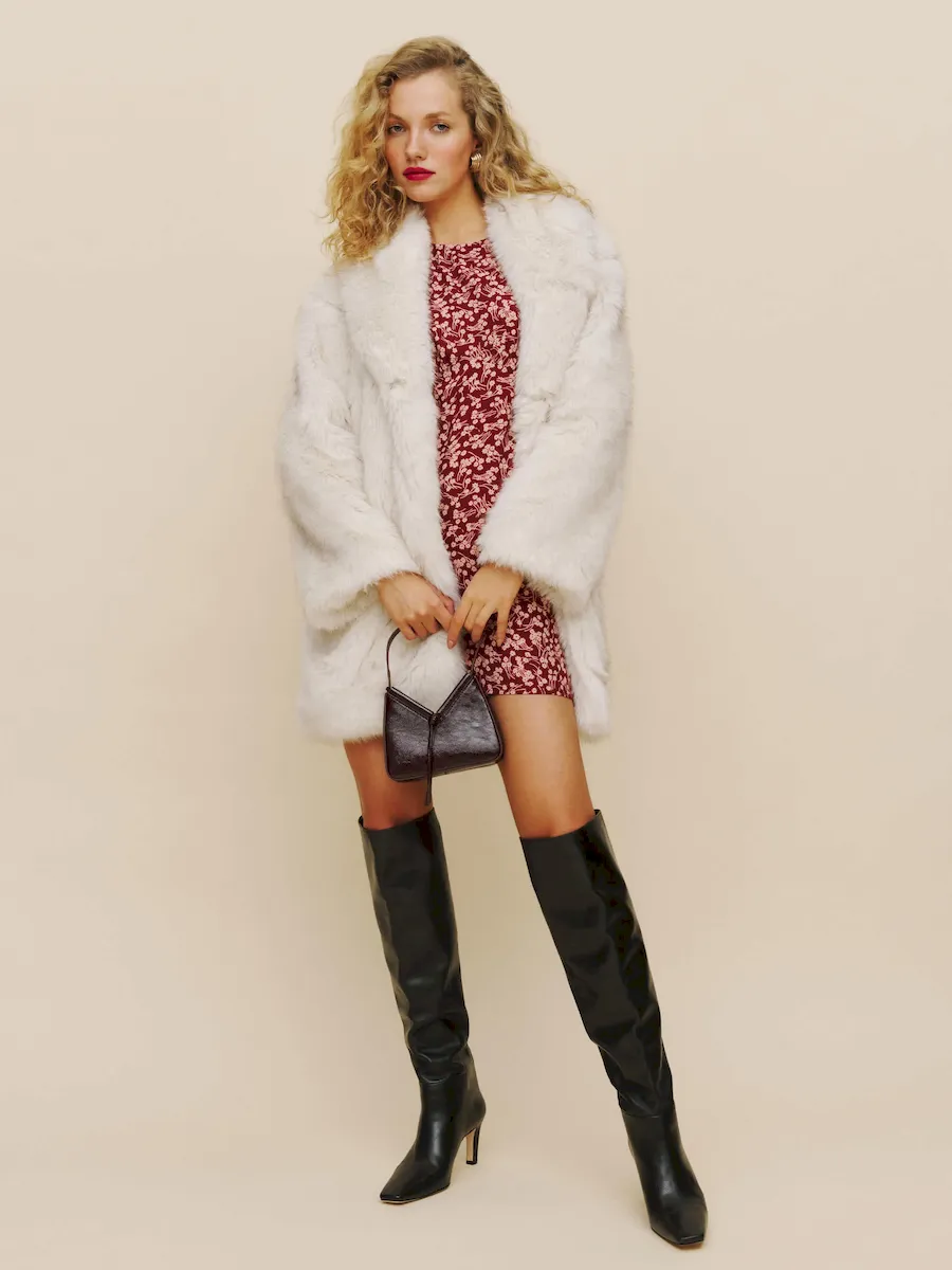 The model is wearing a size 0 and is 5’10”, 23″ waist, 35.5″ hips, 32.5″ bust.