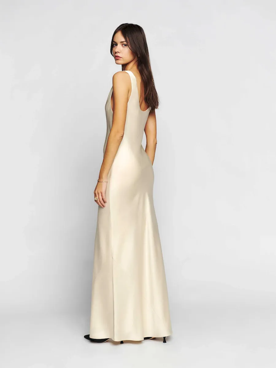 This is a double satin fabric made from 88% NAIA Renew Acetate and 12% Polyester. Dry clean only. More onfabric & care.