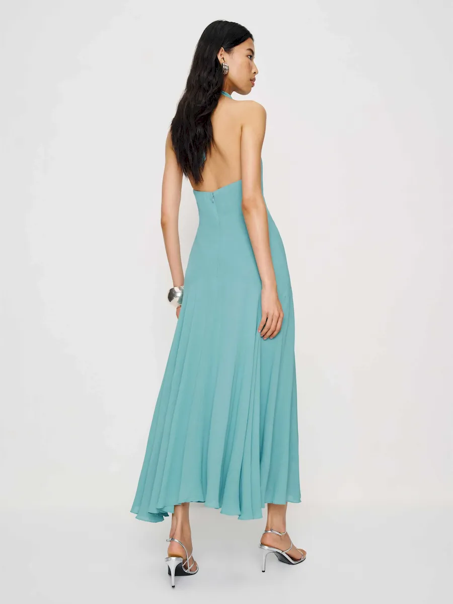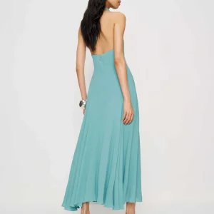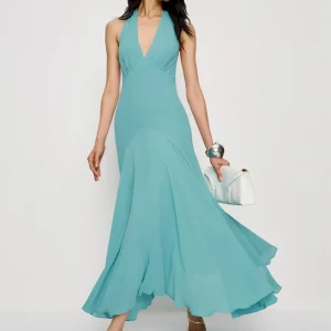 The model is wearing a size 0 and is 5’10”, 24.5″ waist, 34.5″ hips, 31″ bust.