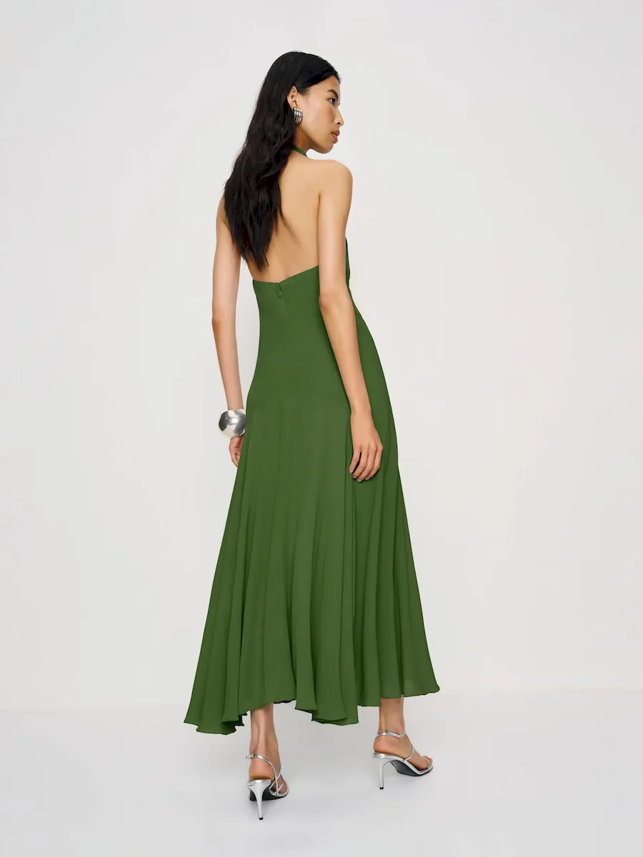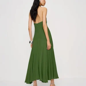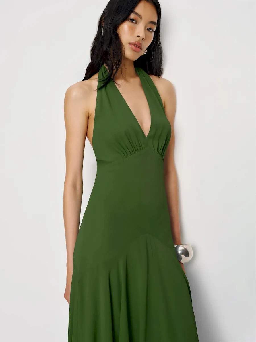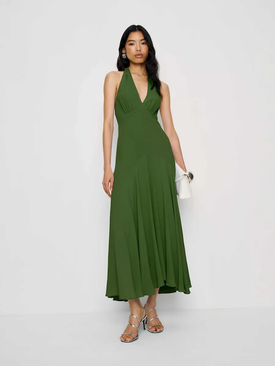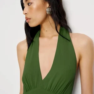 The model is wearing a size 0 and is 5’10”, 24.5″ waist, 34.5″ hips, 31″ bust.