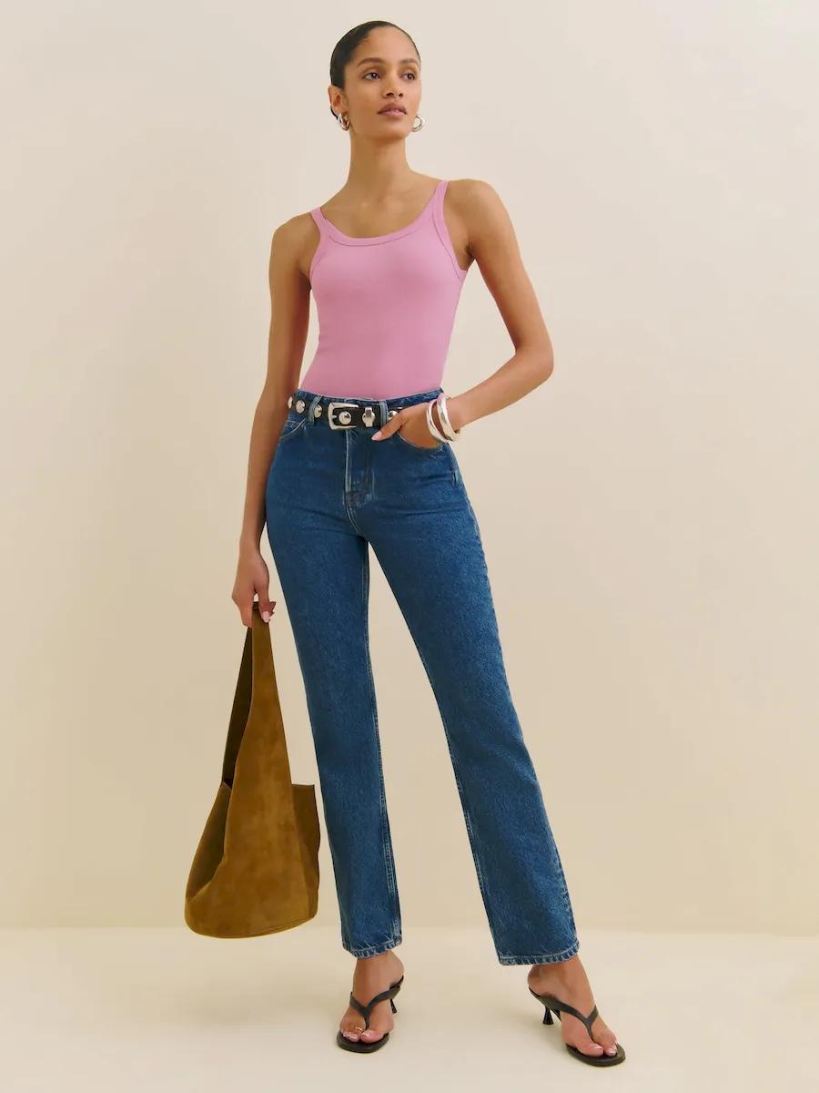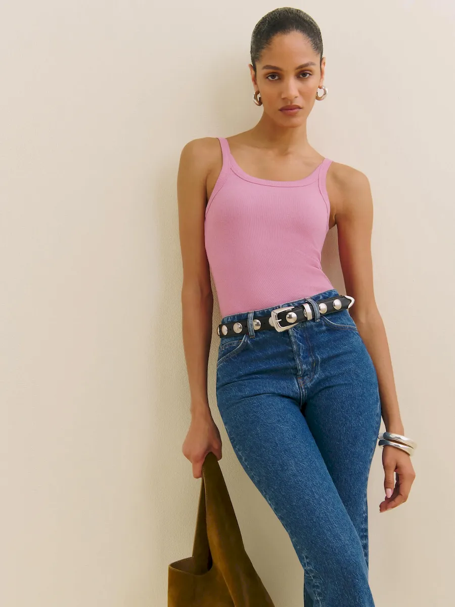 This is a 2×1 medium weight rib knit fabric with moderate stretch made from 97% Organically Grown Cotton and 3% Spandex. Hand wash + dry flat. More onfabric & care.