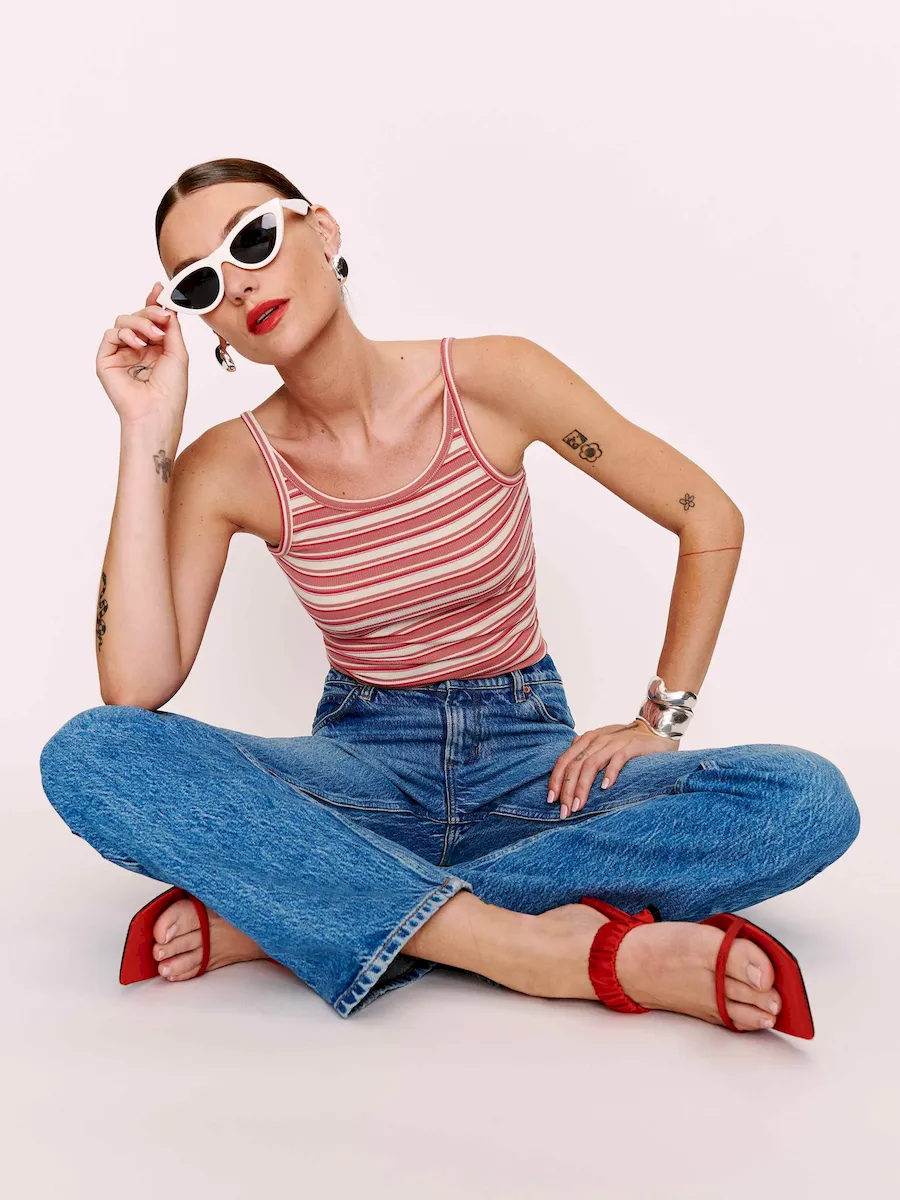 The model is wearing a size XS and is 5’10”, 25″ waist, 34.5″ hips, 31″ bust.