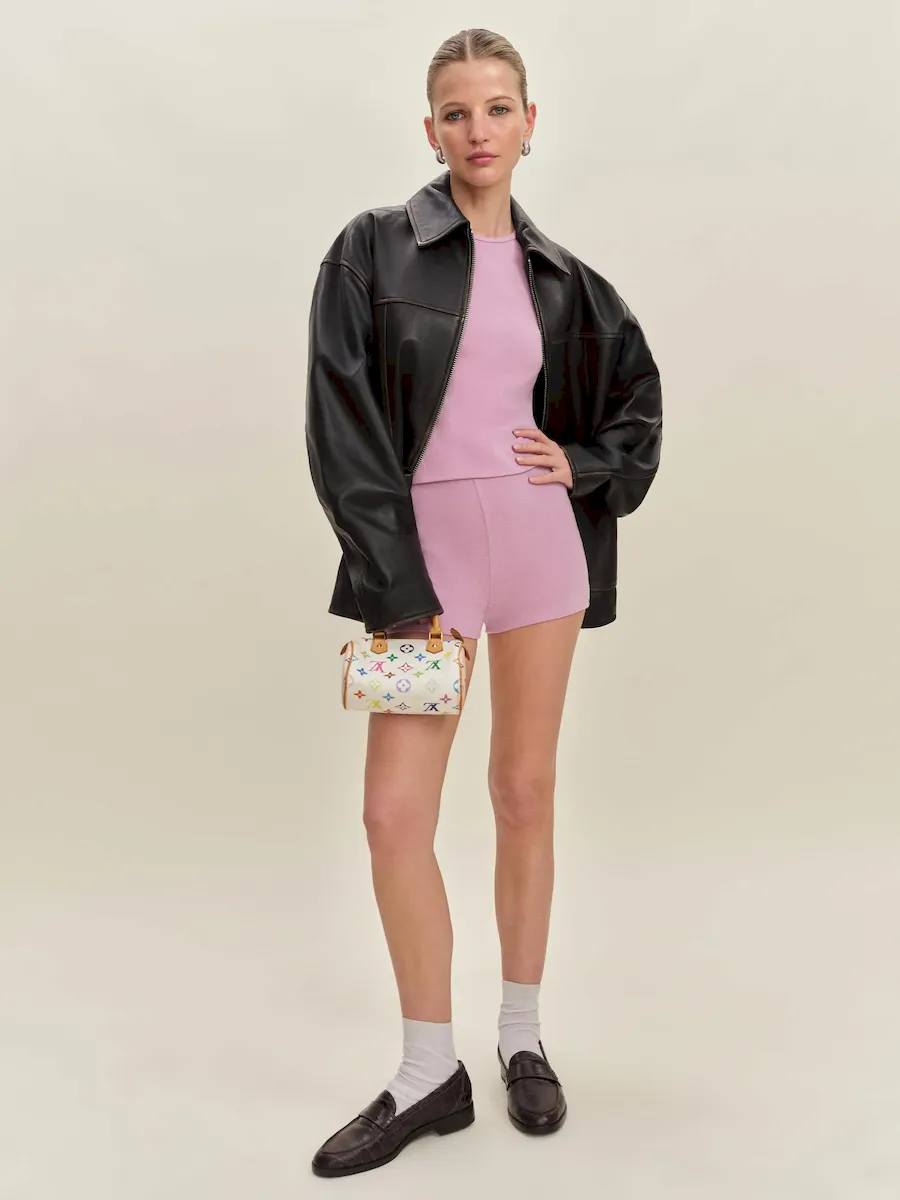 The model is wearing a size XS and has a 23″ waist, 34″ hips.