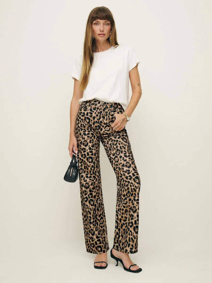 The model is wearing a size 25 and has a 25″ waist, 34.5″ hips.