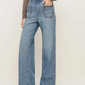 The model is wearing a size 25 and has a 25″ waist, 34.5″ hips.