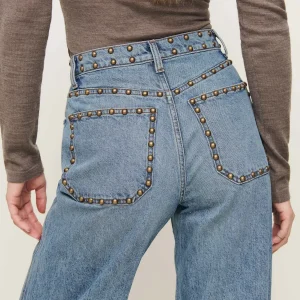 product size: 27, inseam: 32″, front rise: 12 3/4″, leg opening: 23 1/2″.