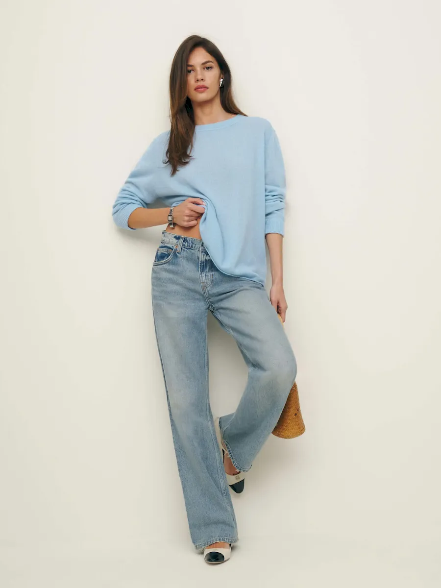 This is a fine-gauge recycled cashmere blend sweater knit – 95% Recycled Cashmere, 5% Cashmere. Hand wash + dry flat. More onfabric & care.