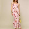 The model is wearing a size 0 and is 5’11”, 24″ waist, 35″ hips, 31″ bust.