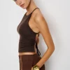 The model is wearing a size 0 and has a 25″ waist, 35″ hips.