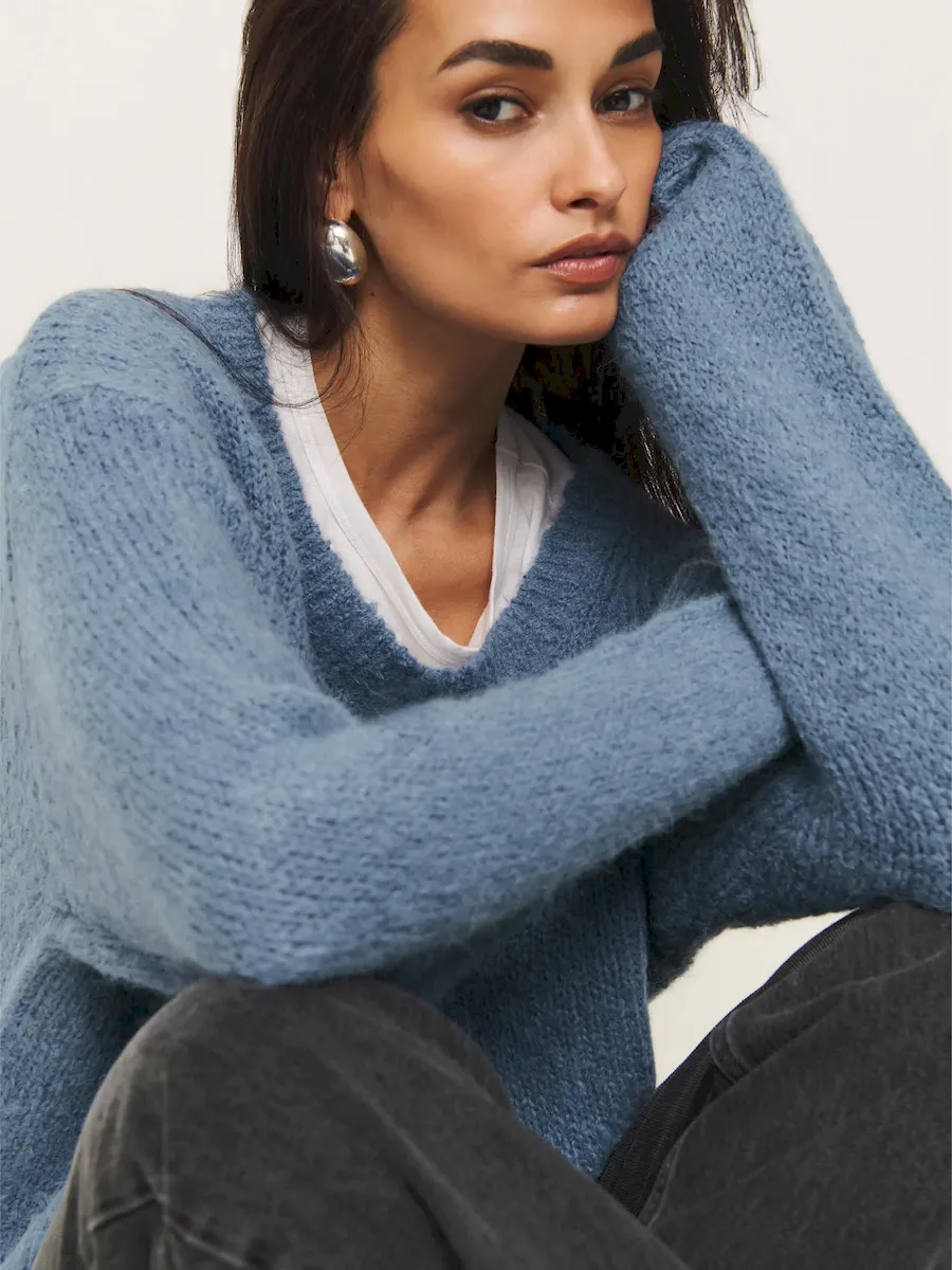 This is a soft, slubby alpaca sweater yarn spun in Italy, made from 56% Baby Suri Alpaca, 32% RWS Merino Wool, 8% GRS Recycled Nylon, 4% Nylon. Hand wash + dry flat. More onfabric & care.